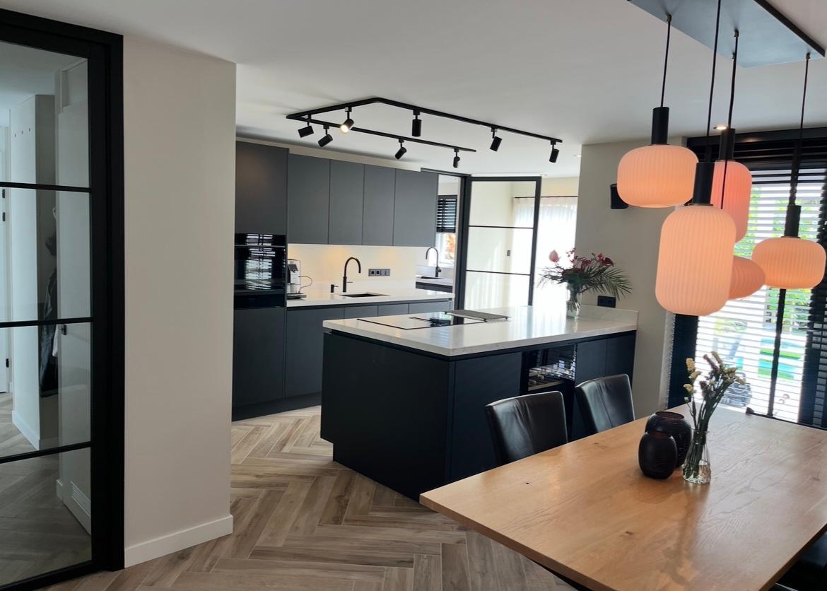 Clan Vakwerk heeft bij ons de complete benedenverdieping verbouwd. De werkzaamheden bestonden o.a. uit het leggen van vloerverwarming en een nieuwe tegelvloer, het vervangen van de elektra, het verlagen en aanpassen van stopcontacten in de woonkamer, het aanpassen van het leidingwerk, het monteren van kozijnen en staallook binnendeuren, het verlagen van het plafond, het betegelen en vernieuwen van de toiletruimte, het vervangen van glas en het monteren van de ruiten in de voordeur. Ook zijn alle wanden opnieuw gestuct.